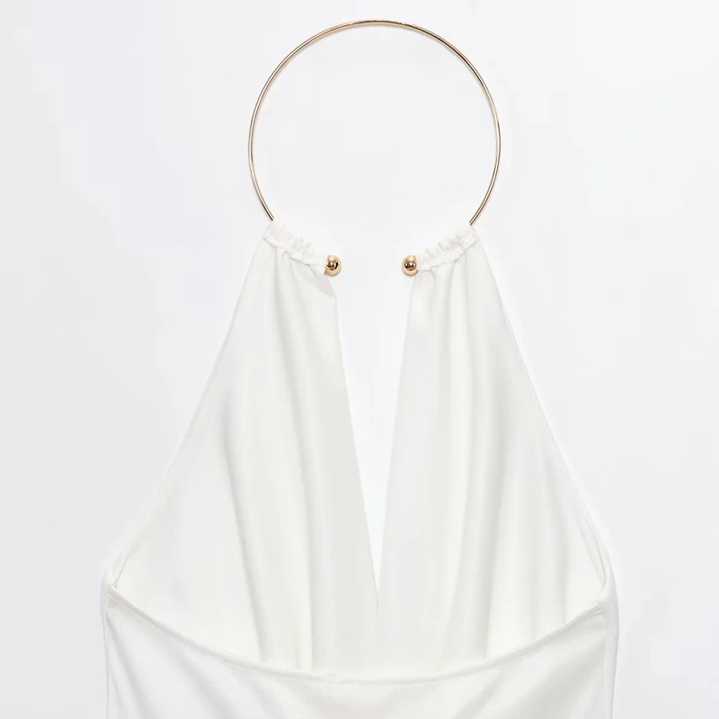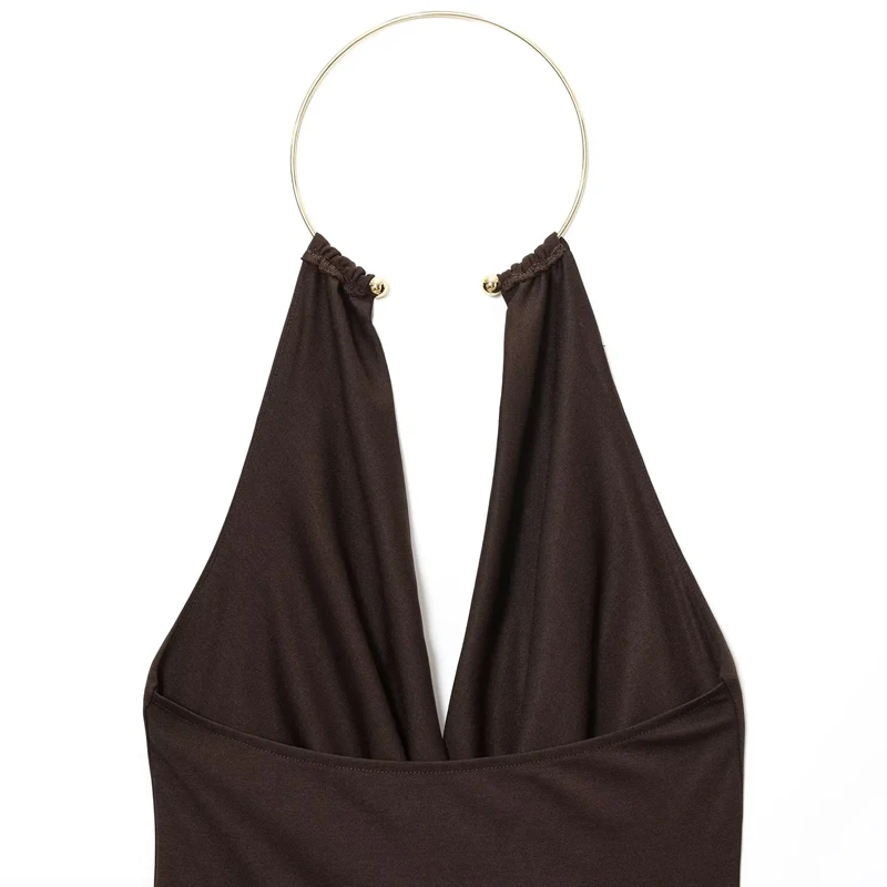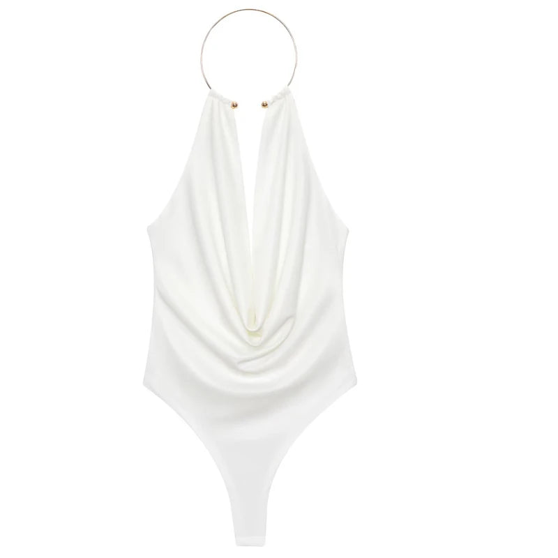 Charme e sofisticação em uma unica peça o body Leonor é magnifico com decote no colo e com detalhe dourado no pescoço dando toque sofisticado e design minimalista, esse body em malha fina traz a forte tendência de 2025 a cor marrom em uma versão super elegante. outra opção é o classico que nunca sai de moda o body na cor branca .